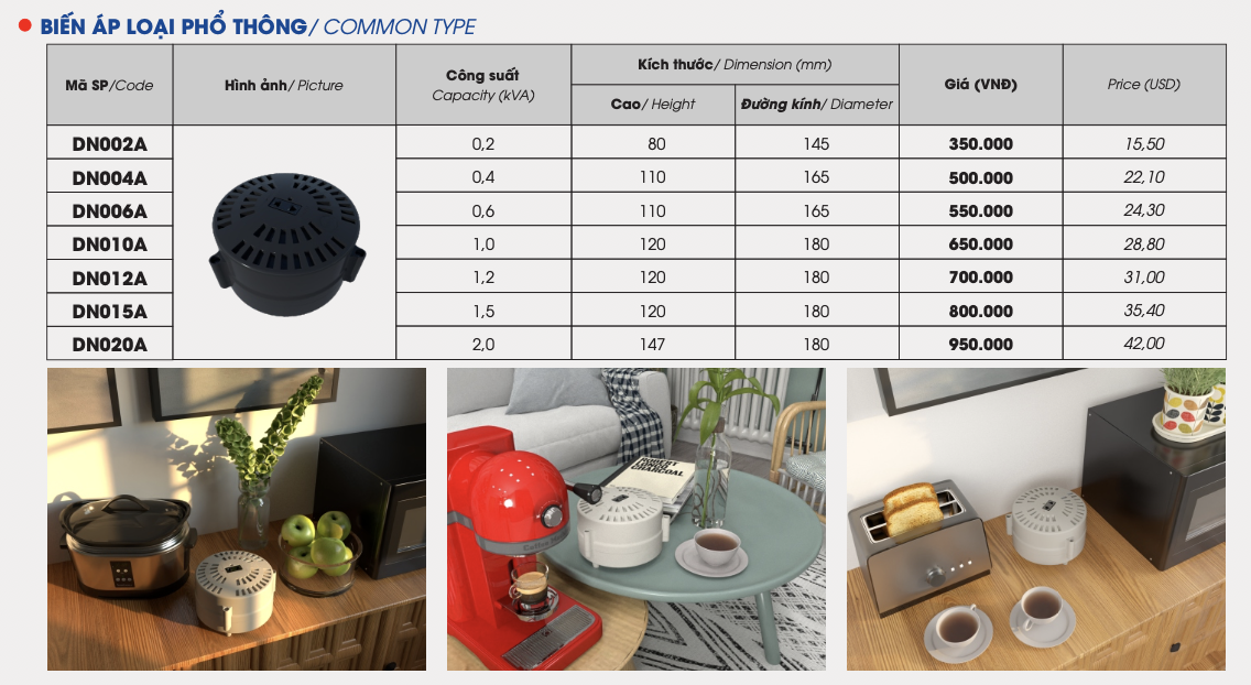 BIẾN ÁP ĐỔI NGUỒN HẠ ÁP 1 PHA