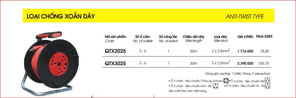Ổ CẮM KÉO DÀI QUAY TAY KIỂU RULO QTX3025 - chống xoắn dây