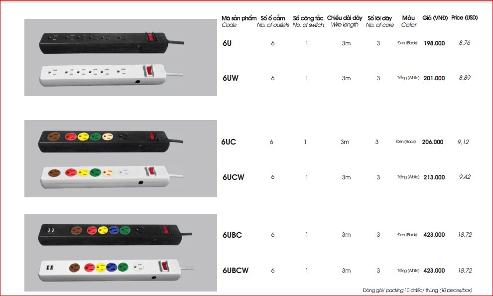 Thông số của Ổ Cắm Kéo Dài LiOA Tiêu Chuẩn Mỹ Nhật 6UBCW