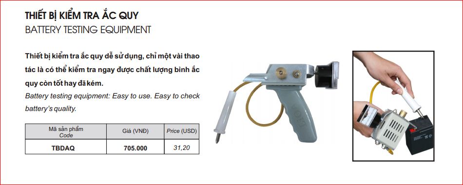 Thiết bị kiểm tra ắc quy dễ sử dụng, chỉ một vài thao tác là có thể kiể tra ngay được chất lượng bình ắc quy còn tốt hay đã kém.